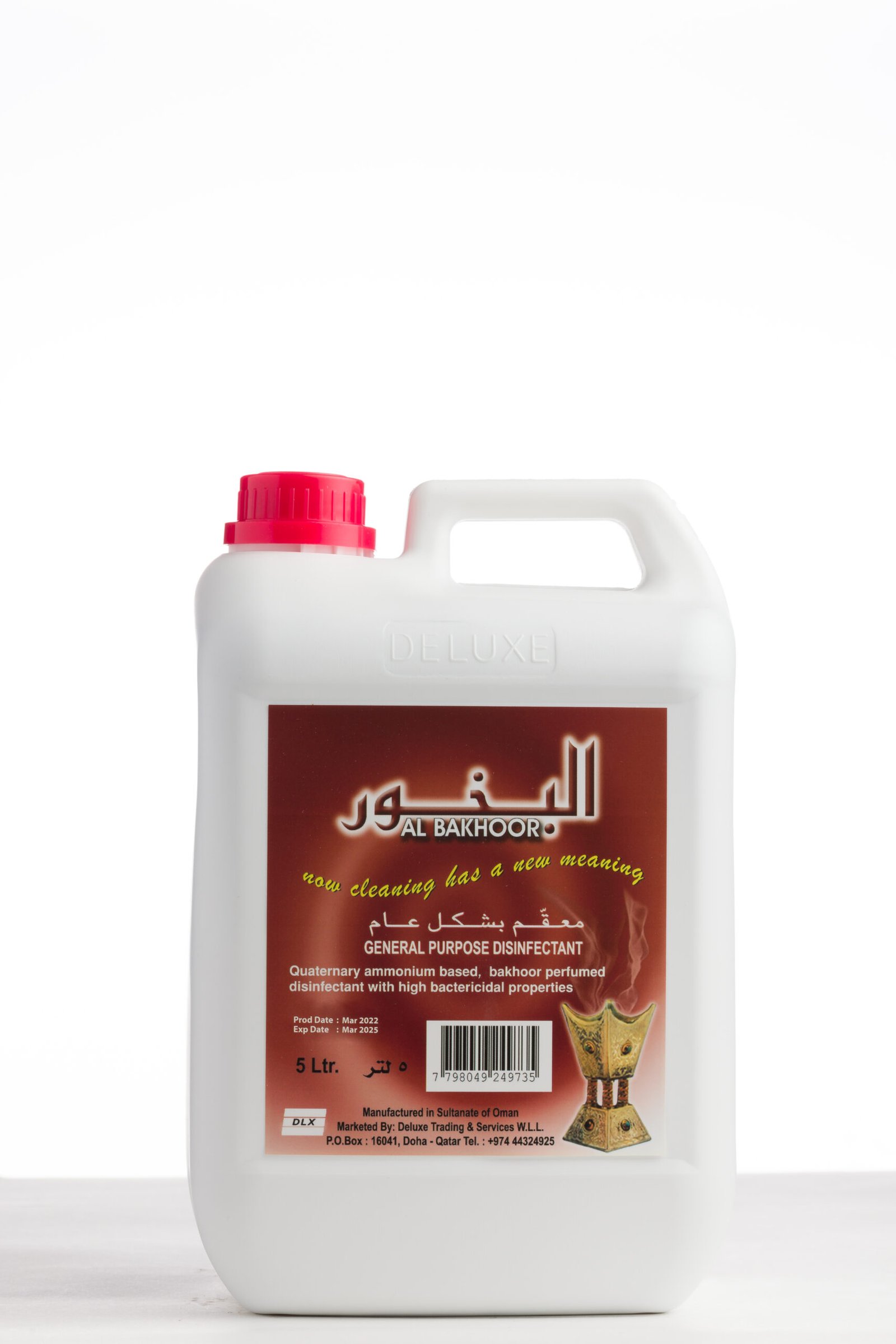 Buy AL BAKHOUR General Purpose Disinfectant from Deluxe Chemical Qatar — a high-quality multi-surface disinfectant for daily cleaning and odour control.