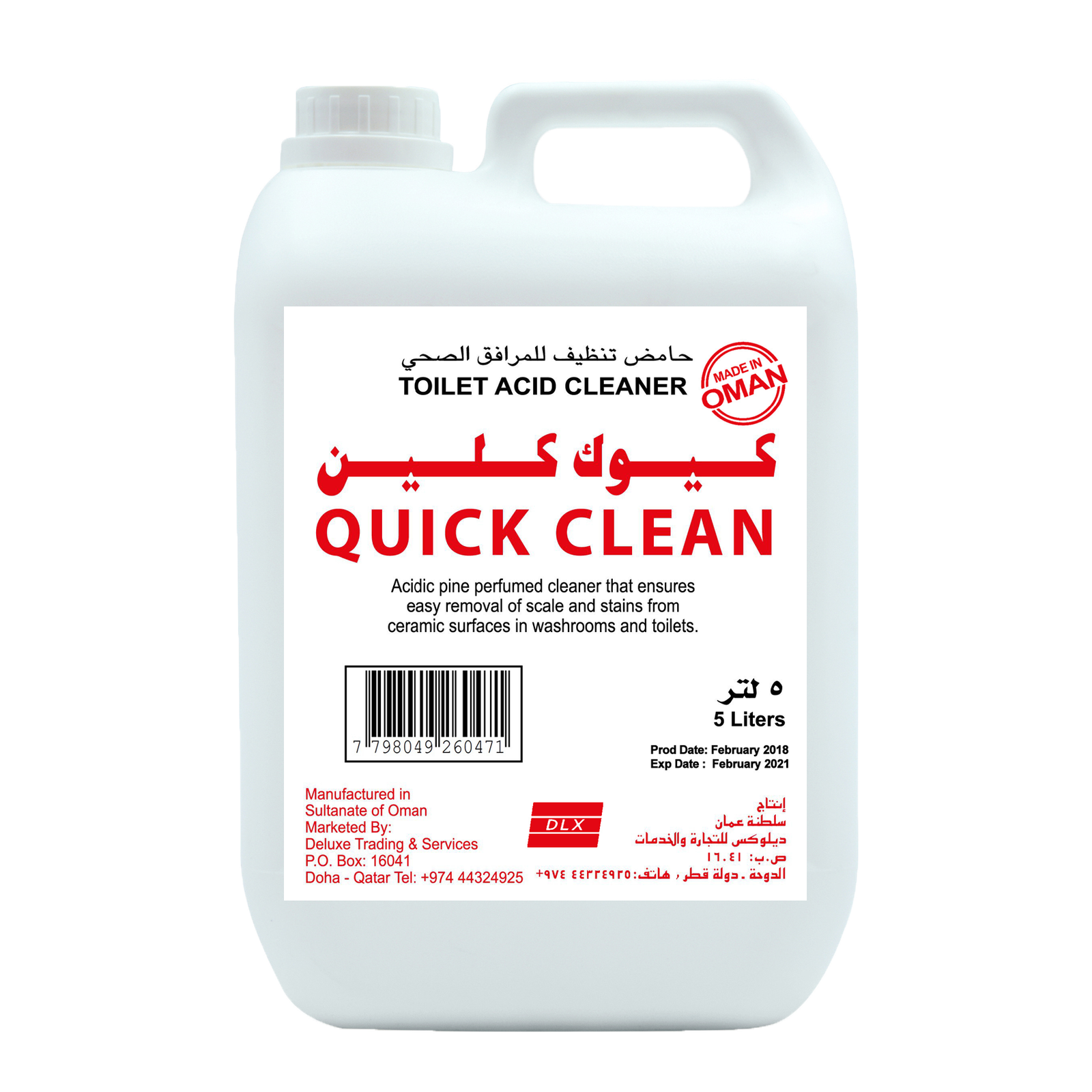 QUICK CLEAN Hand Wash, from Deluxe Chemical Qatar, is gentle on hands yet tough on dirt. Its moisturizing formula keeps skin soft while ensuring effective removal of germs and impurities.
