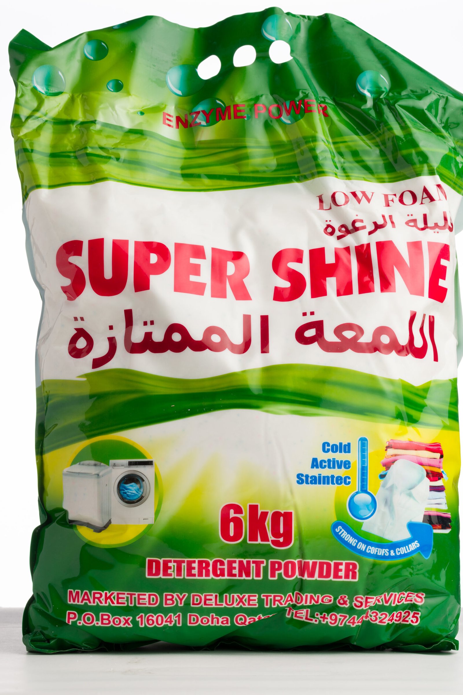 Buy SUPER SHINE Detergent Powder (6 KG) from Deluxe Chemical Qatar — bulk pack detergent for long-lasting freshness and brightness.