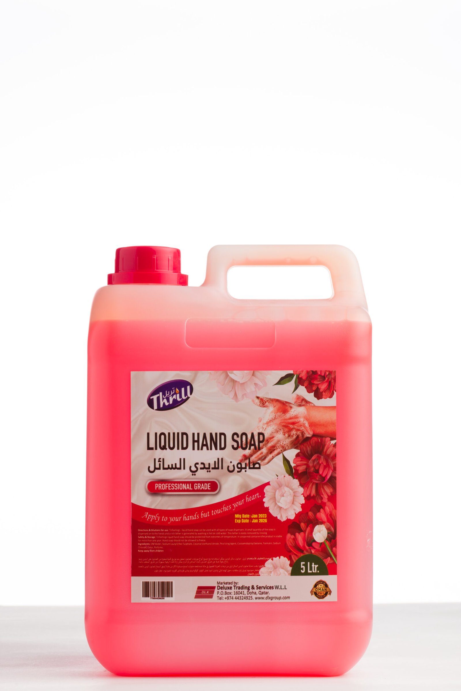 Buy THRILL Liquid Hand Soap (Rose) from Deluxe Chemical Qatar — moisturizing rose hand soap with floral freshness in every wash.