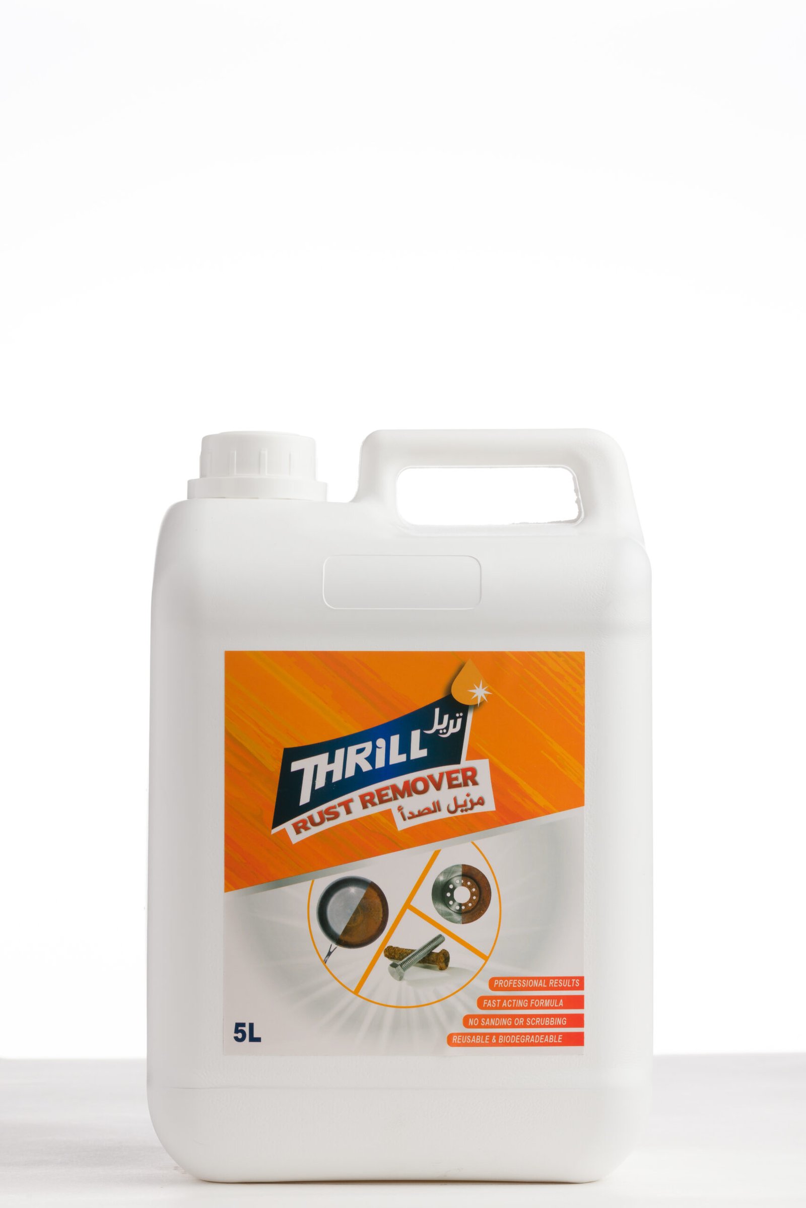 Buy THRILL Rust Remover from Deluxe Chemical Qatar — industrial-grade cleaner that restores metal surfaces to a clean shine.