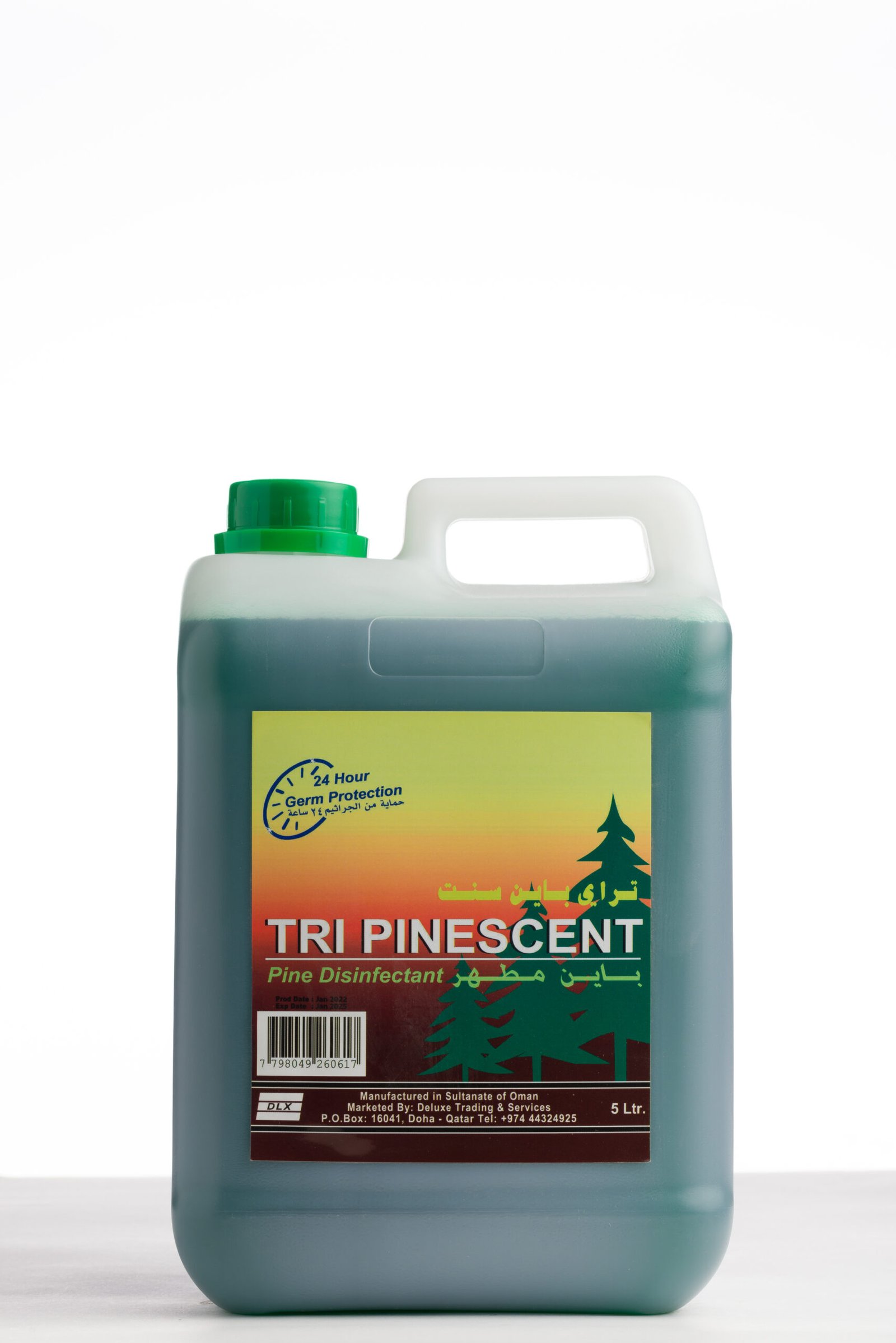 Buy TRI PINESCENT Disinfectant (5 LTR) from Deluxe Chemical Qatar — strong pine-scented disinfectant that ensures hygiene and long-lasting freshness.